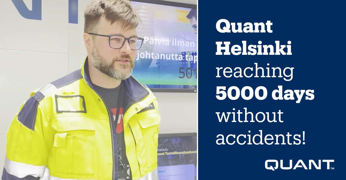 At the end of March, our site team in Helsinki, Finland, reached 5000 days without accidents, which means over 13 years. This is a remarkable safety achievement, of which we should all be proud. It tells about our commitment, caring, and above all, a strong safety culture.